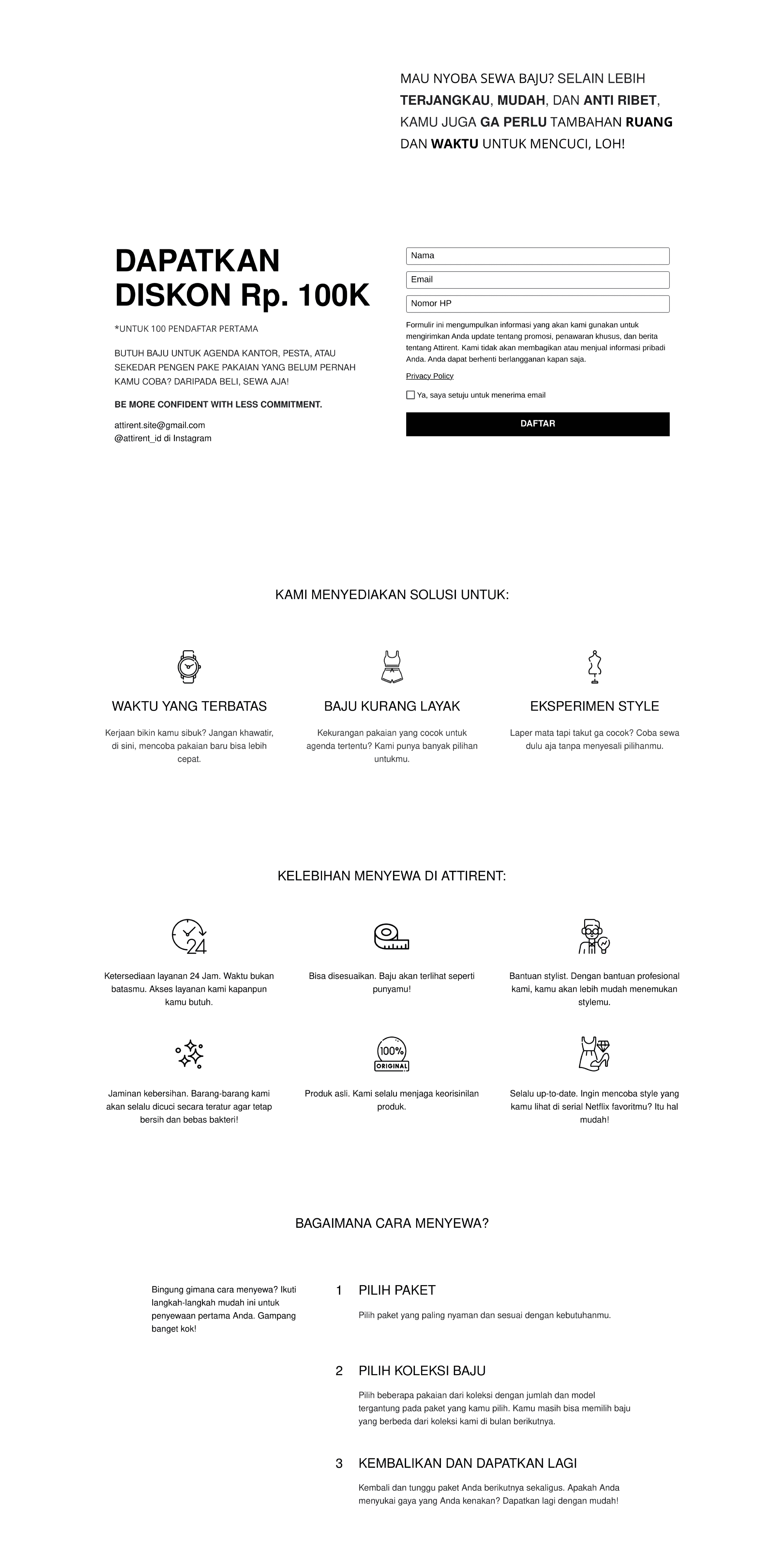 Create fully-functional, devices-friendly landing pages to generate leads for our group project brand "Attirent"